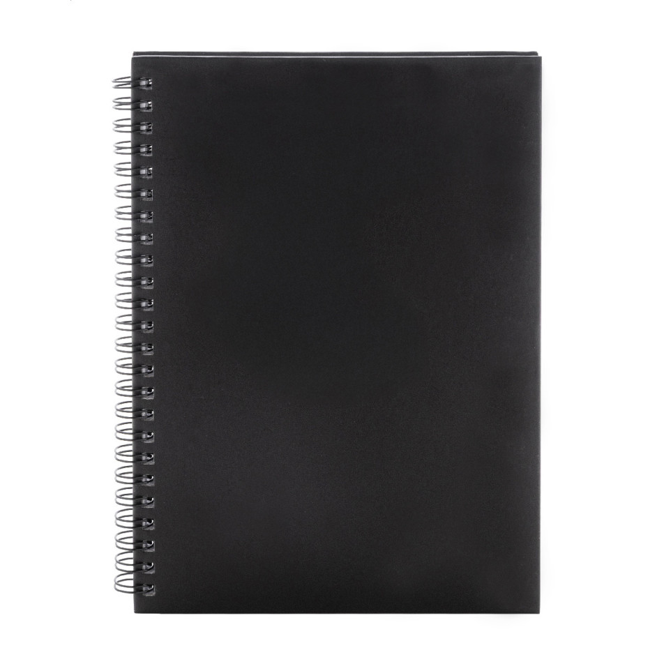 Carnet de notes format A5 doté d’une couverture souple en papier recyclé et de 80 pages lignées, relié par spirales, idéal pour la prise de notes quotidienne, les réunions professionnelles ou les sessions de brainstorming.
