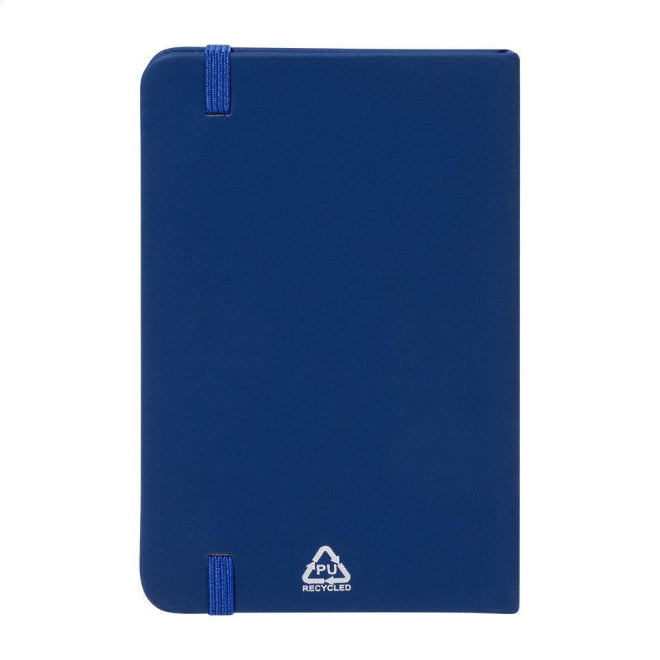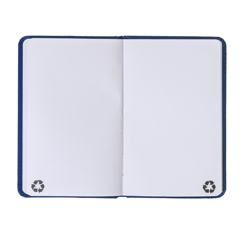 Carnet de notes A6 bleu Repuk Blank RPU, recouvert de similicuir recyclé avec 100 feuilles vierges en papier recyclé. Idéal pour prendre des notes au quotidien, en réunion ou en déplacement.