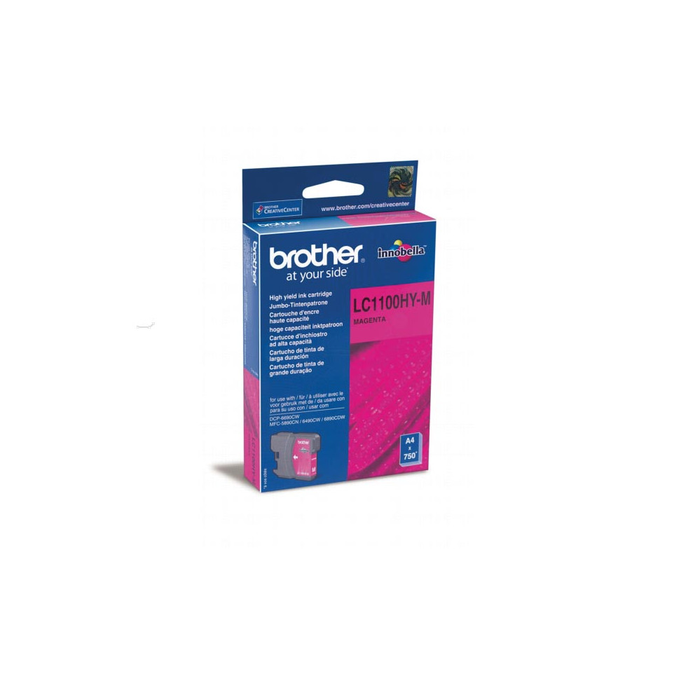 Cartouche d’encre magenta Brother LC-1100HYM, haut rendement, pour imprimantes jet d’encre MFC et DCP. Permet d’imprimer jusqu’à 750 pages, idéale pour un usage bureautique ou domestique exigeant.