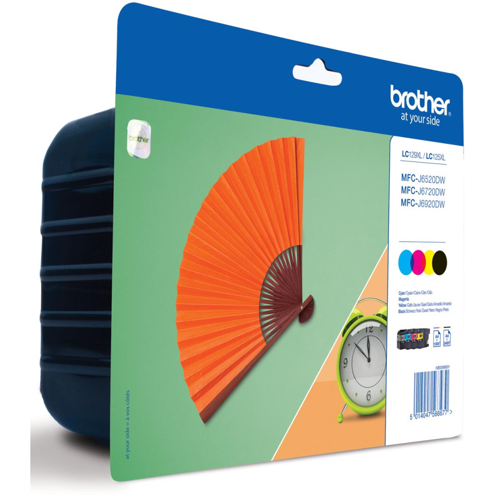 Cartouche d'encre Brother LC-129XLVALBPDR haute capacité, conçue pour les imprimantes MFC-J6520DW, MFC-J6720DW et MFC-J6920DW. Multipack de 4 couleurs (noir, cyan, magenta, jaune) pour un usage bureautique intensif.