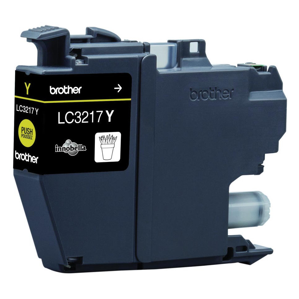 Cartouche d'encre jaune Brother LC-3217Y, compatible avec les imprimantes MFC-J5330DW, MFC-J5730DW, MFC-J5930DW, MFC-J6530DW, MFC-J6930DW et MFC-J6935DW. Idéale pour des impressions domestiques ou professionnelles nécessitant des couleurs précises et durables.