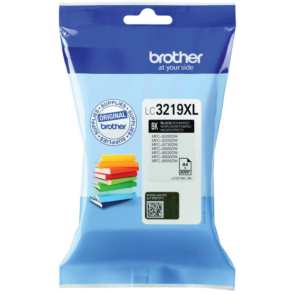 Cartouche d'encre noire Brother LC-3219BK, conçue pour les imprimantes jet d'encre professionnelles de la série MFC-J. Grâce à son rendement de 3 000 pages, elle répond aux besoins d’impression fréquente dans les bureaux et environnements professionnels.