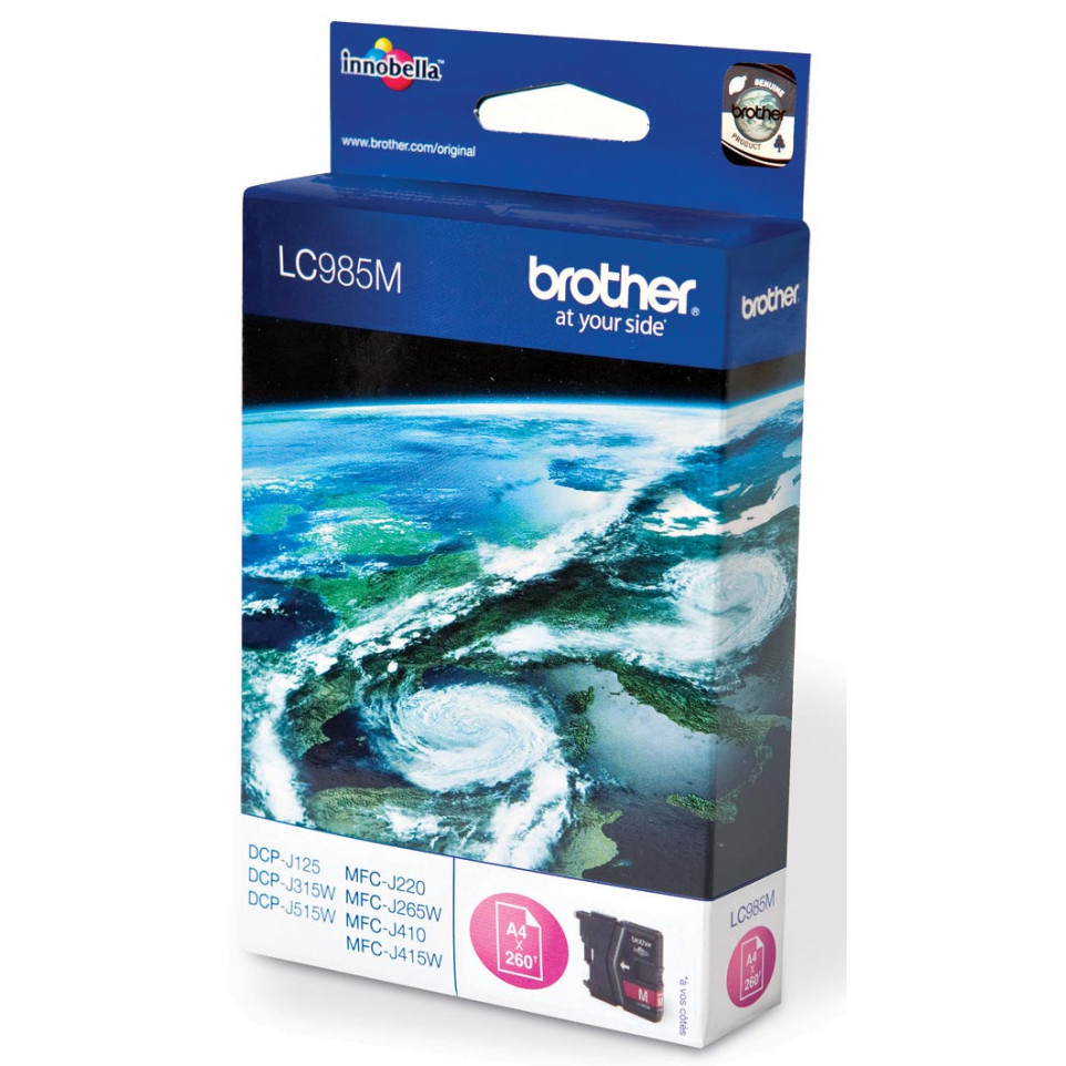Cartouche d’encre magenta Brother LC-985M, conçue pour les imprimantes jet d’encre DCP-J 140 W, DCP-J 125, DCP-J 315 W, DCP-J 515 W, MFC-J 220, MFC-J 265 W, MFC-J 410 Series, MFC-J 410, MFC-J 415 W. Permet d’imprimer environ 260 pages.