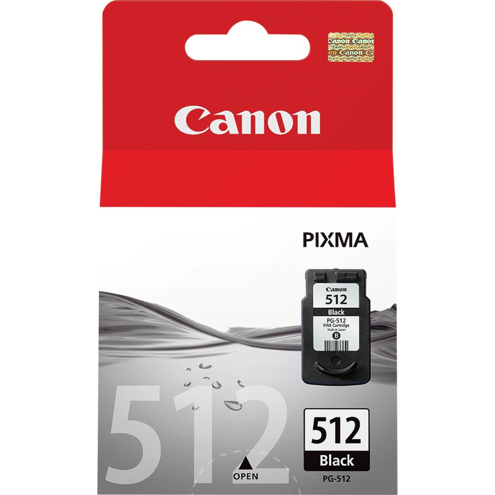 Insérez la cartouche Canon PG512 dans votre imprimante Pixma compatible. Elle est reconnue automatiquement et permet d’imprimer des documents texte ou graphiques avec une qualité constante, jusqu’à l’épuisement de la capacité de 401 pages selon la norme ISO/IEC 24711.