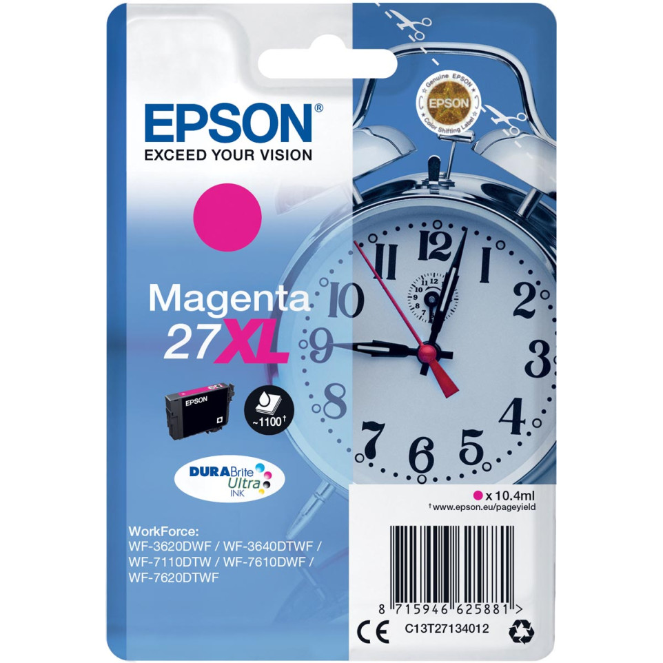 Cartouche d'encre Epson 27XL magenta pour imprimantes jet d'encre, idéale pour les utilisateurs recherchant des impressions couleur nettes et durables en usage professionnel ou domestique intensif.