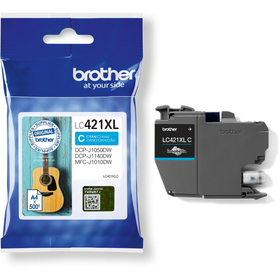 Cartouche d'encre cyan Brother LC-421XLC, conçue pour l’impression couleur de haute qualité. Compatible avec les imprimantes Brother DCP-J105DW, DCP-J1140DW et MFC-J1010DW, elle est idéale pour une utilisation bureautique ou domestique exigeant des rendus fiables et nets.
