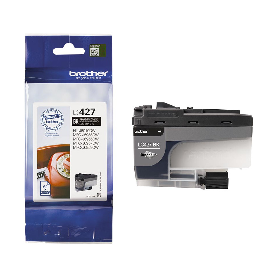 La cartouche d’encre Brother LC-427BK noire standard est conçue pour l’imprimante HL-J6010DW et offre une autonomie d’impression de 3 000 pages, selon la norme ISO/IEC 24711. Idéale pour les environnements professionnels exigeant des impressions nettes et fiables.