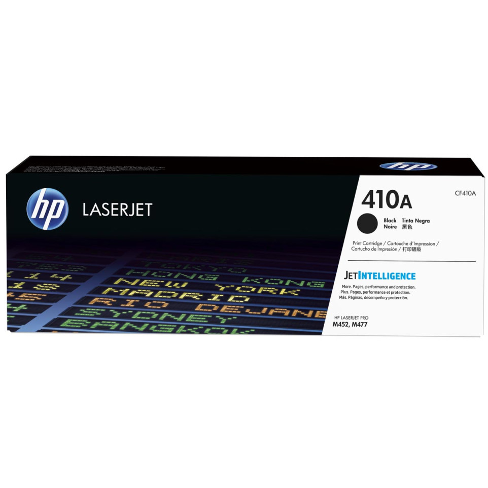 Cartouche toner HP 410A noire d’origine, référence CF410A, conçue pour les imprimantes HP LaserJet Pro M377, M452 et M477, offrant une capacité standard de 2 300 pages pour une impression professionnelle fiable au quotidien.