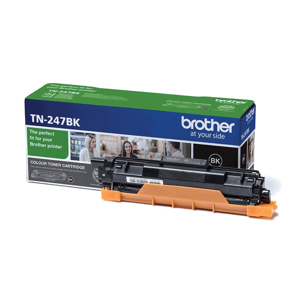 Toner Brother TN-247BK noir, cartouche laser de marque à haut rendement, idéal pour les usages professionnels nécessitant des impressions nettes et durables. Compatible avec une large gamme d’imprimantes Brother couleur de la série HL, DCP et MFC.