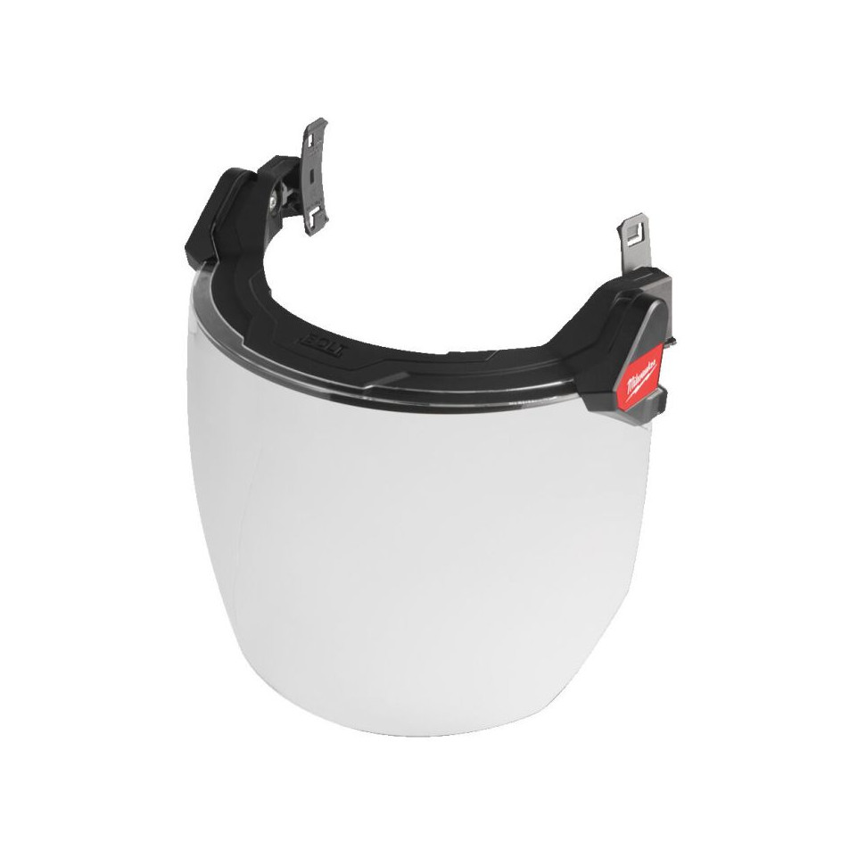 Visière transparente complète Milwaukee Bolt conçue pour offrir une protection faciale panoramique lors de travaux exigeant sécurité et visibilité optimale. Adaptée aux casques, elle assure confort et compatibilité avec divers accessoires Bolt dans des environnements professionnels.
