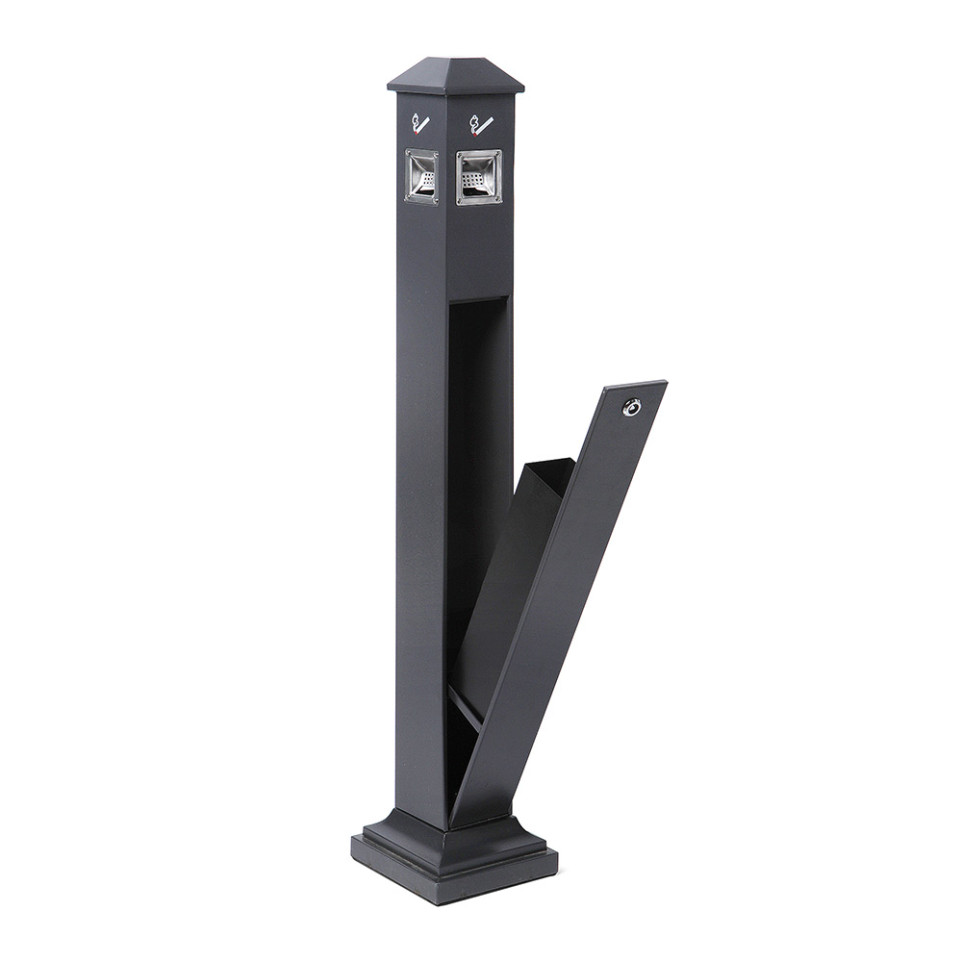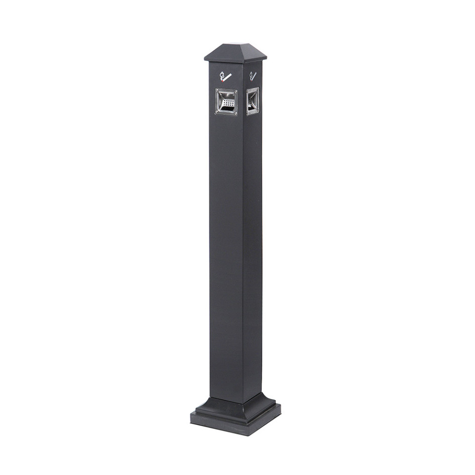 Cendrier sur pied en acier de couleur noire, conçu pour un usage professionnel en extérieur ou en intérieur, offrant une solution pratique et discrète pour la gestion des mégots.