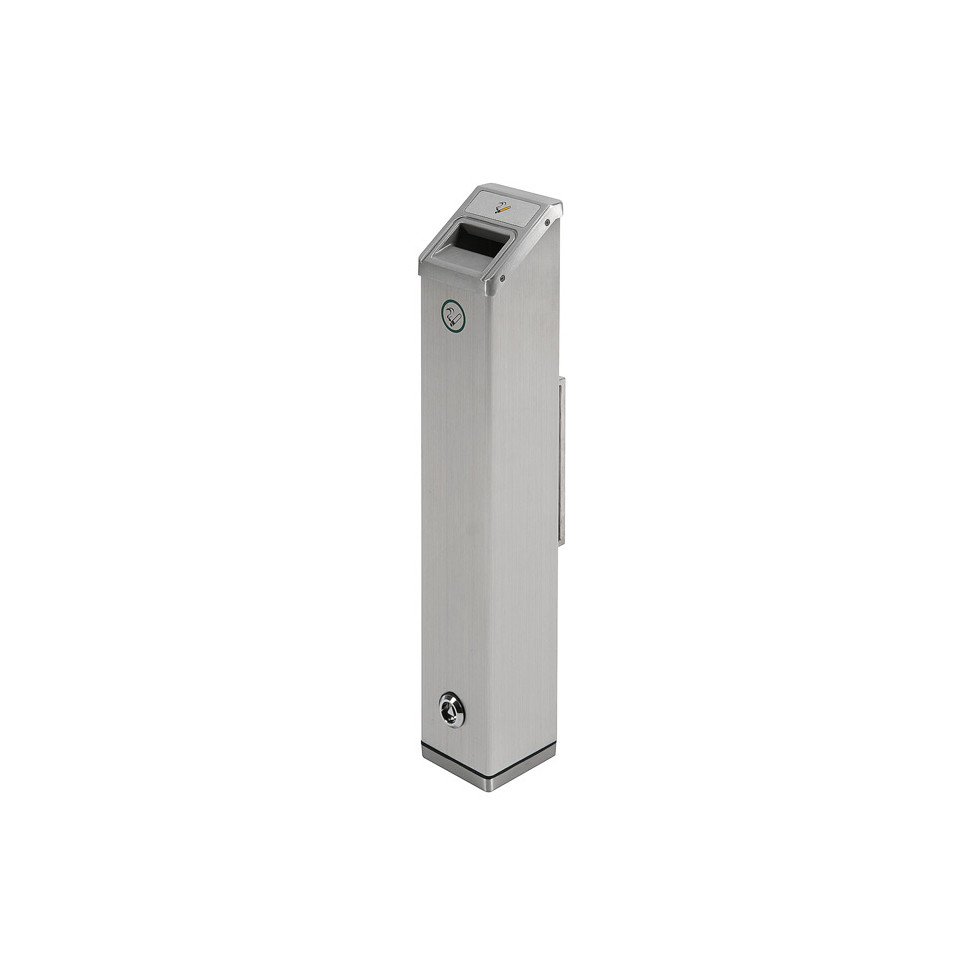 Le cendrier se fixe directement au mur grâce à son système de montage dédié. Il accueille les mégots de manière sécurisée et hygiénique. Idéal pour les entrées d'immeubles, espaces commerciaux, zones d'accueil ou tout espace extérieur nécessitant une solution de collecte propre et discrète.