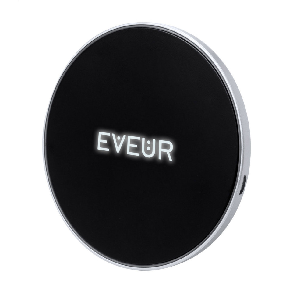 Glowix noir est un chargeur sans fil 5W élégant, conçu pour recharger rapidement vos appareils compatibles simplement par contact. Son boîtier noir en plastique intègre une lumière LED qui éclaire subtilement les gravures personnalisées pour un effet visuel moderne. Parfait pour un bureau ou un espace professionnel.