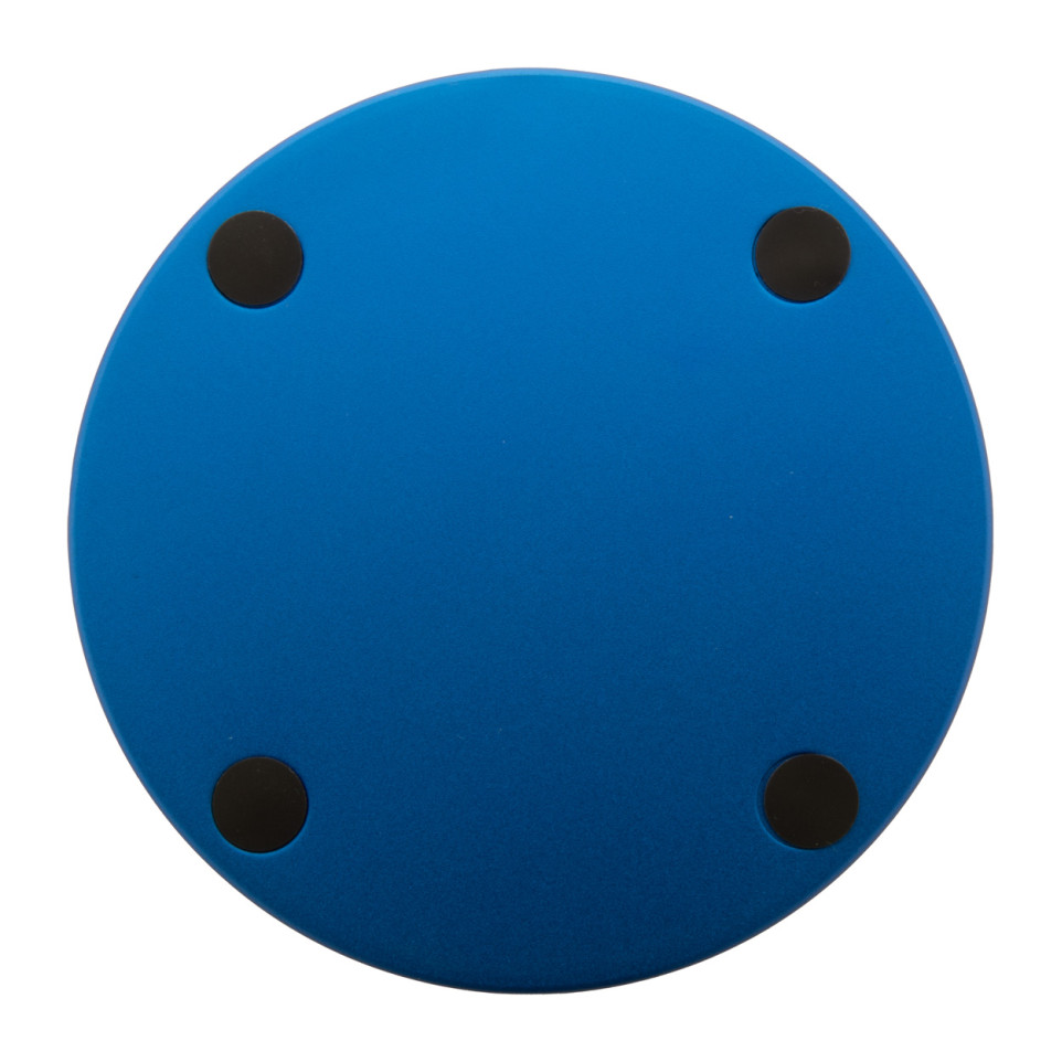 Chargeur rapide sans fil Walger en aluminium recyclé, offrant une puissance de charge de 15W pour les appareils compatibles. Livré avec câble USB, ce modèle bleu allie fonctionnalité et éco-responsabilité.