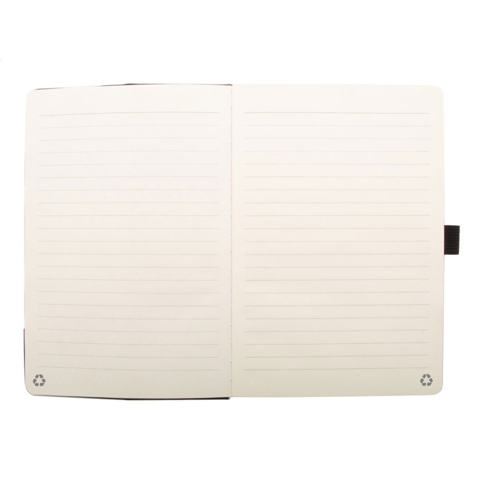 Le carnet est-il fabriqué à partir de matériaux durables ? - Oui, le carnet est fabriqué en polyester RPET (polyester recyclé à partir de bouteilles plastiques) avec un insert en bambou, et ses feuilles sont en papier recyclé.