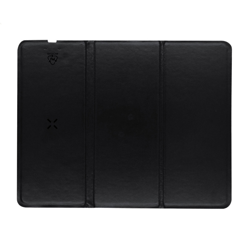 Tapis de souris pliable en PU recyclé intégrant un chargeur sans fil 10W avec support pour téléphone. Solution 2-en-1 pratique combinant accessoire de bureau et station de charge pour une utilisation quotidienne optimisée.
