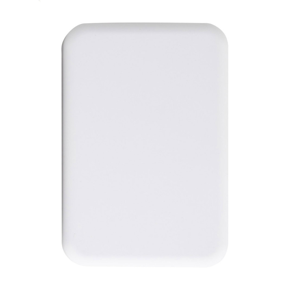 Powerbank en ABS recyclé avec batterie de 5000 mAh intégrant un chargeur sans fil magnétique de 5W. Solution de recharge polyvalente idéale pour les professionnels en déplacement ou les utilisateurs d'iPhone 12 et plus récents.