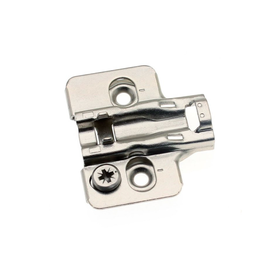 L’embase se visse directement sur la surface de fixation à l’aide de vis appropriées. Elle permet un alignement précis et un réglage en trois dimensions, offrant ainsi une grande liberté d’ajustement pour l’installation ou le remplacement de charnières sur mobilier, cloisons ou équipements industriels.