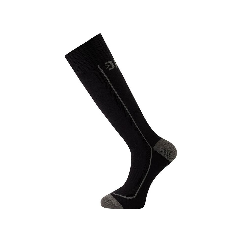 Chaussettes hautes techniques Coolmax Pluto de Dassy, noires et grises, taille 40-43, conçues pour offrir confort et protection au travail ou lors d’activités intenses où la gestion de l’humidité et la résistance sont essentielles.