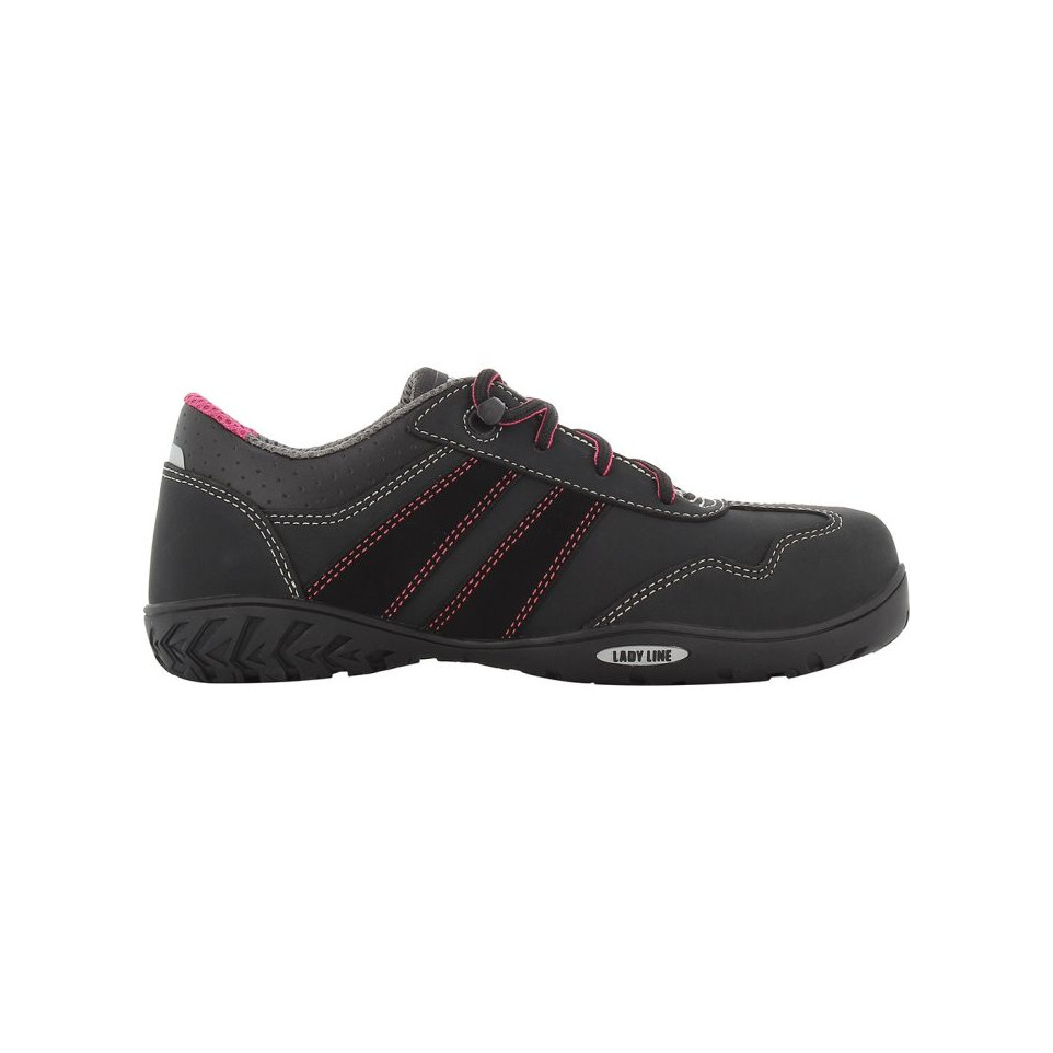 Chaussure de sécurité basse pour femme, idéale pour les environnements humides et les usages professionnels nécessitant une protection S3 et SRC. Adaptée aux métiers nécessitant le passage répété de portiques de détection.