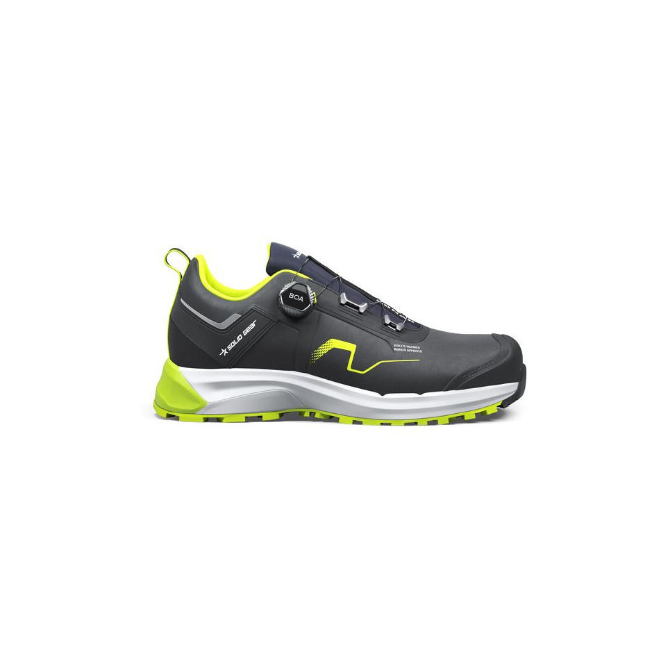 Chaussures basses de sécurité ESD S3S Sonar Low Green de Solid Gear, conçues pour offrir protection et confort lors des activités professionnelles en environnements exigeants. Idéales pour les utilisateurs recherchant sécurité certifiée et respirabilité.