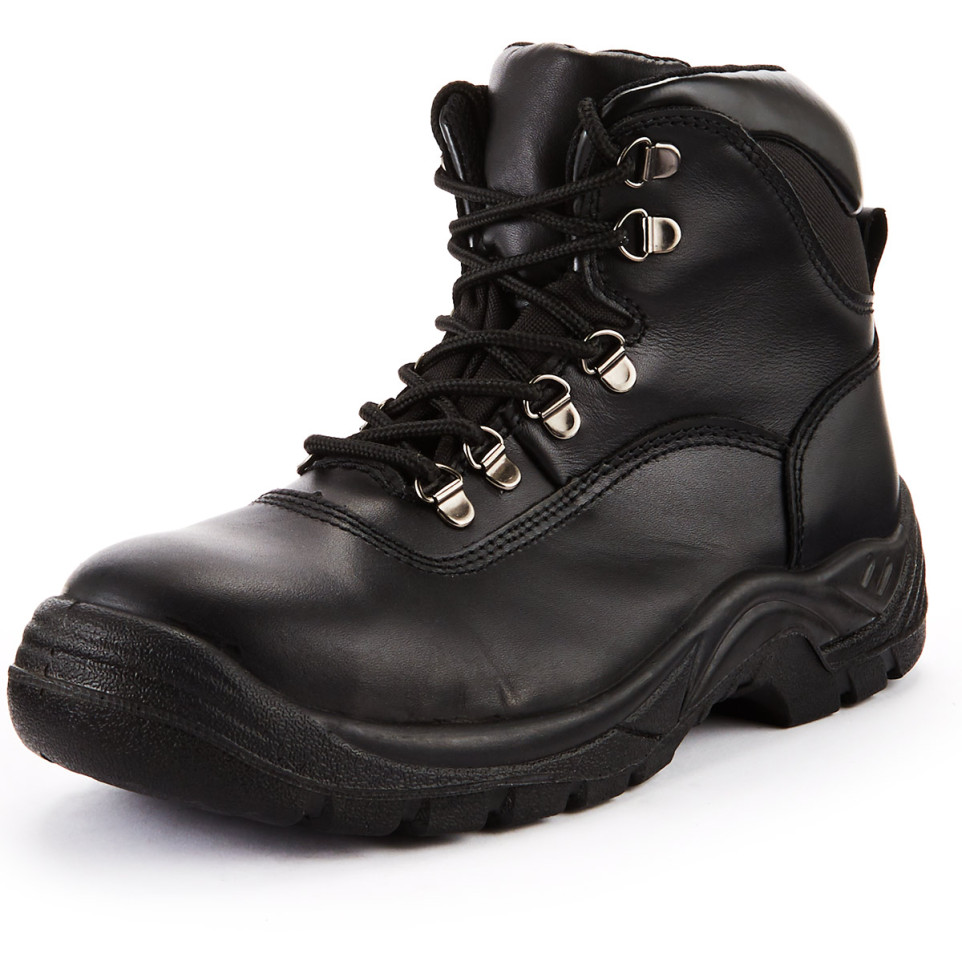 Bottes de sécurité idéales pour les environnements extérieurs, dotées d’une tige en cuir pleine fleur et d’une doublure imperméable pour une protection optimale contre l’humidité.