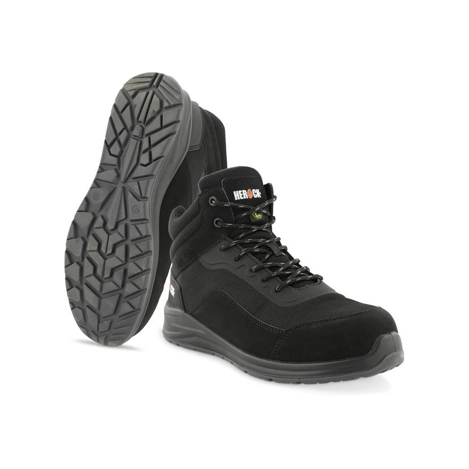 Chaussure haute Herock Leno S1PS SR FO ESD SC conçue pour la sécurité au travail, alliant légèreté, confort et résistance. Adaptée aux environnements industriels exigeants où la protection des pieds est primordiale.