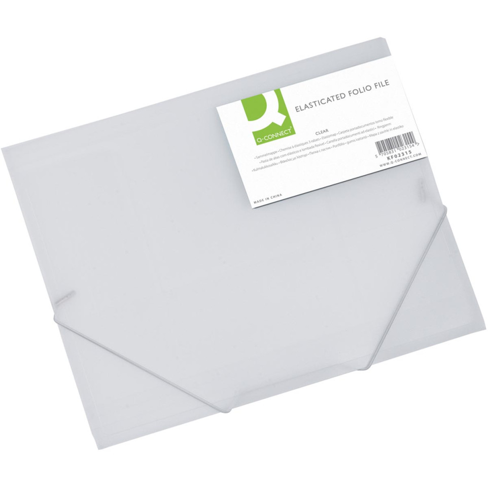 La farde à rabats Q-CONNECT est une chemise en plastique transparent format A4 (24,5 x 32 cm), dotée de trois rabats et d’élastiques, conçue pour organiser et protéger vos documents au bureau comme à la maison.