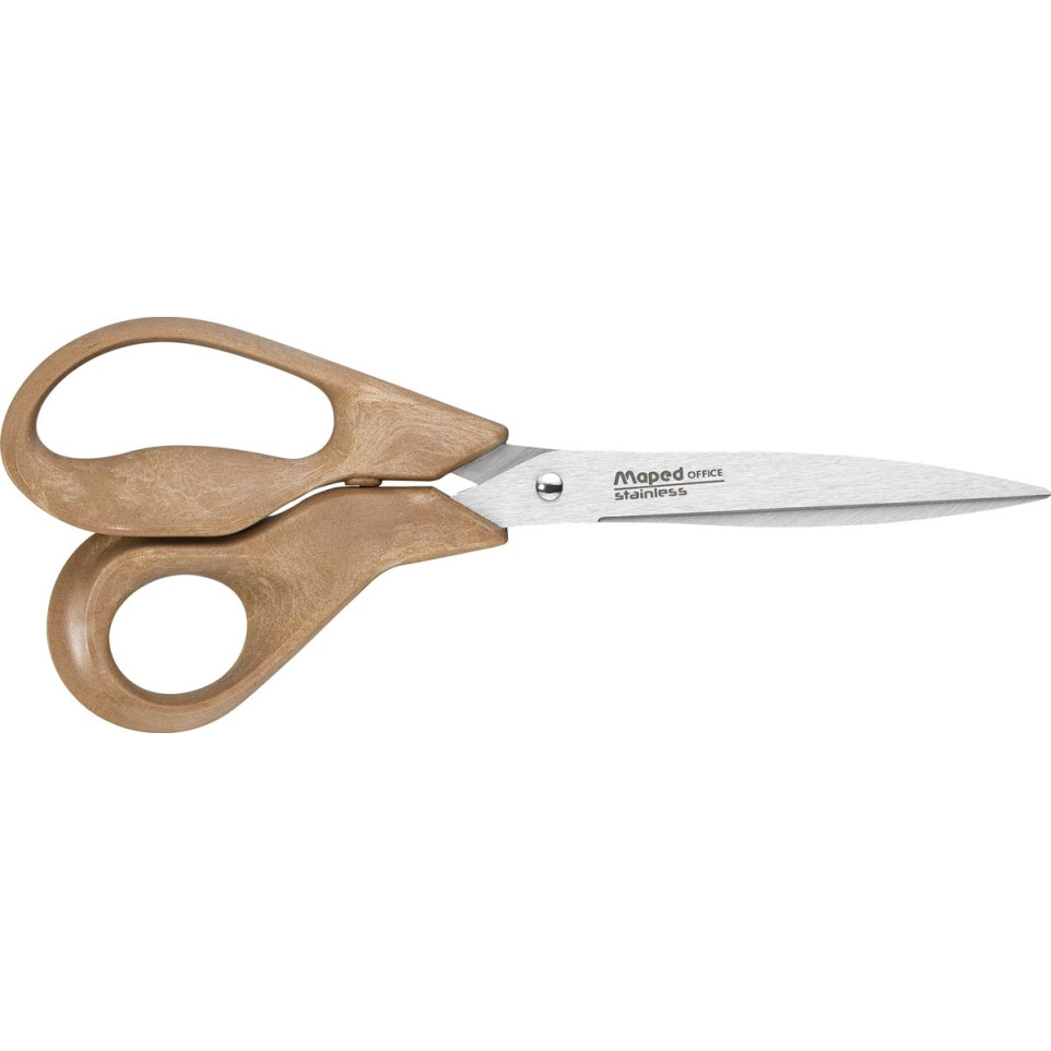 Les ciseaux Maped Office Advanced Wood, 21 cm, sont conçus pour un usage professionnel, adaptés aux droitiers, avec des anneaux en 50% de fibres en bois, offrant un esthétique et une touche écologique.