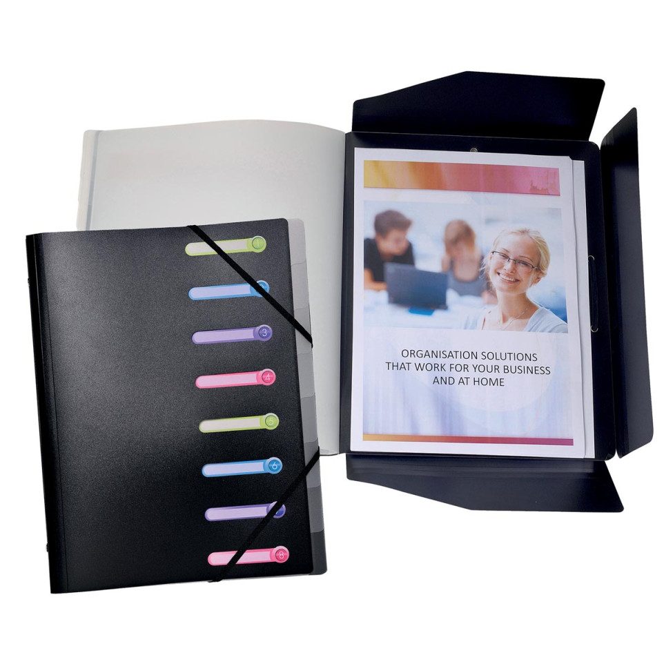 Le trieur Exacompta Exacase noir est un outil de classement conçu pour organiser efficacement vos documents au format A4 (24 x 32 cm). Idéal pour un usage professionnel, scolaire ou administratif, il permet de compartimenter jusqu’à 8 catégories distinctes.