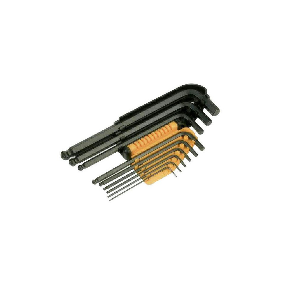 Set de 9 clés Allen à tête sphérique, tailles de 1,5 à 10 mm, livré avec un support de rangement pratique. Idéal pour les travaux de mécanique, d’assemblage ou de maintenance nécessitant précision et accessibilité dans les espaces restreints.