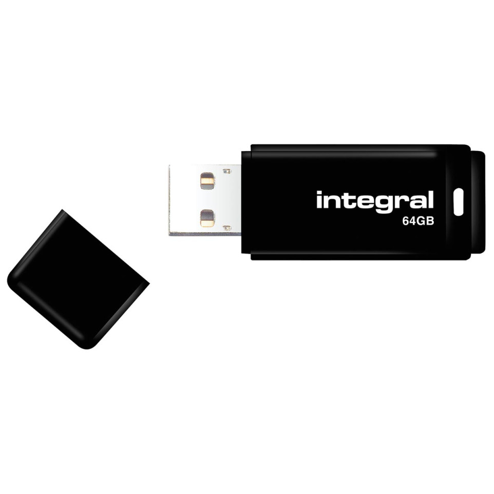 Clé USB 2.0 noire de 64 Go, signée Integral, idéale pour stocker et transférer une large variété de fichiers numériques sur PC ou Mac. Son design compact et discret convient aussi bien à un usage professionnel que personnel.