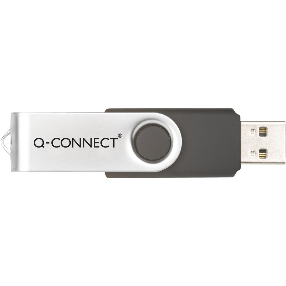 La clé USB Q-CONNECT 2.0 noire offre une capacité de 32 Go pour le stockage fiable de vos fichiers professionnels ou personnels. Son format compact et son design pivotant la rendent idéale pour les déplacements et un usage quotidien sur PC ou Mac.