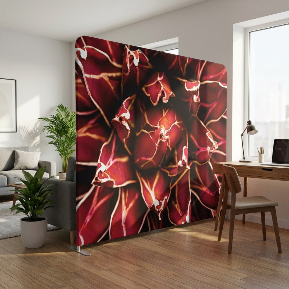 La Cloison En Tissu 200-150 Cactus Rouge est une cloison décorative prête à l'emploi, idéale pour structurer et animer les espaces professionnels tels que restaurants, bureaux ou zones d'accueil.