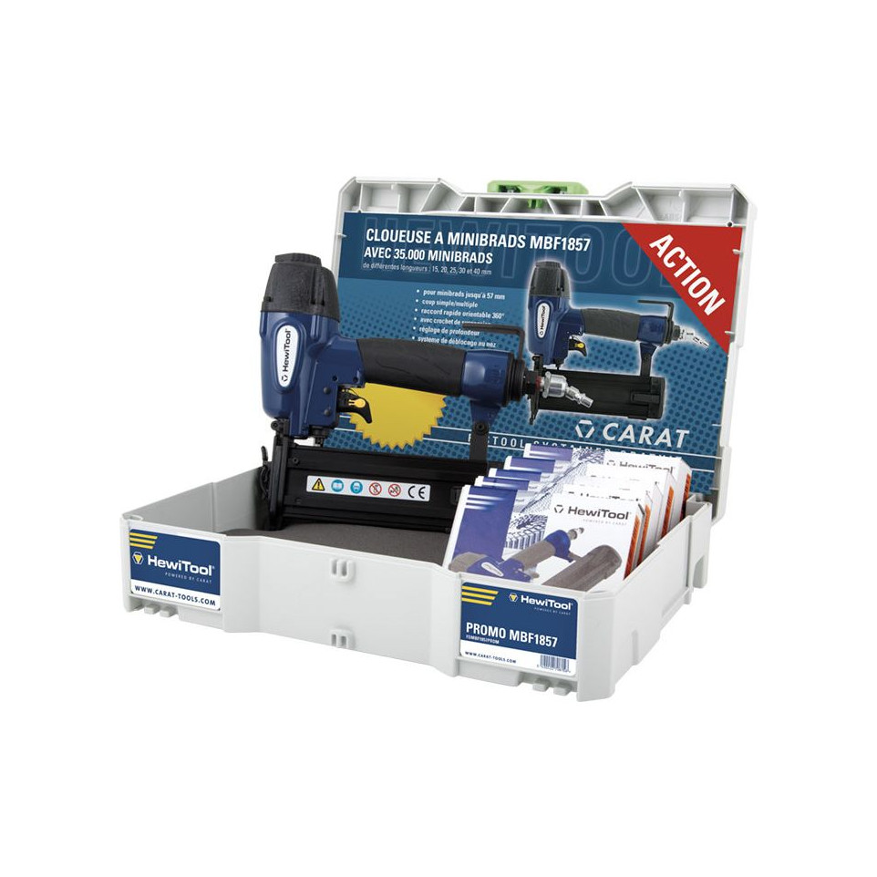 35 000 minibrads assortis (15, 20, 25, 30 et 40 mm) sont fournis avec l’outil.