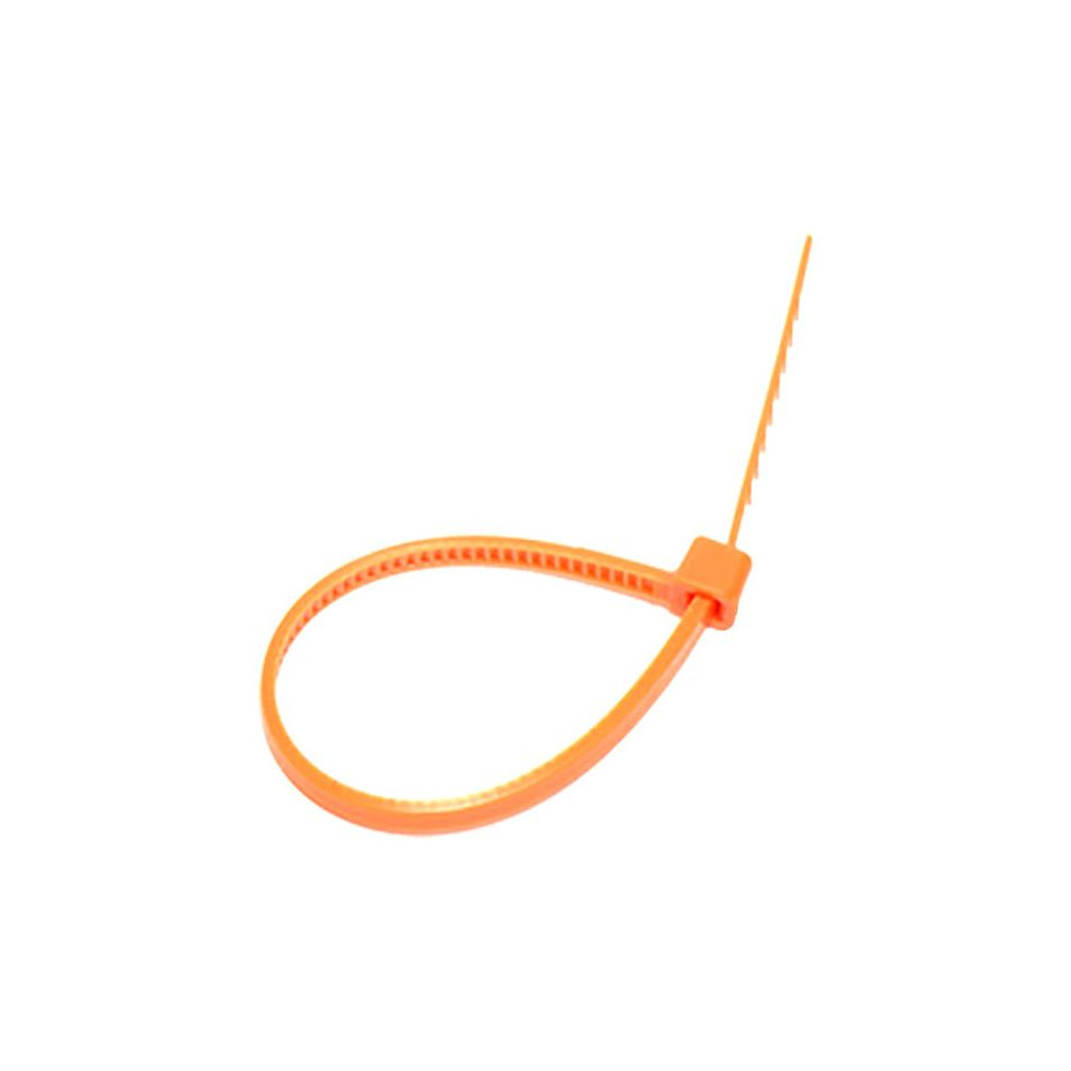 Collier de câblage 4,8 x 200 mm orange, conditionné en sachet de 100 pièces. Adapté à la fixation, l'organisation et la gestion des câbles électriques dans les installations domestiques, professionnelles ou industrielles.