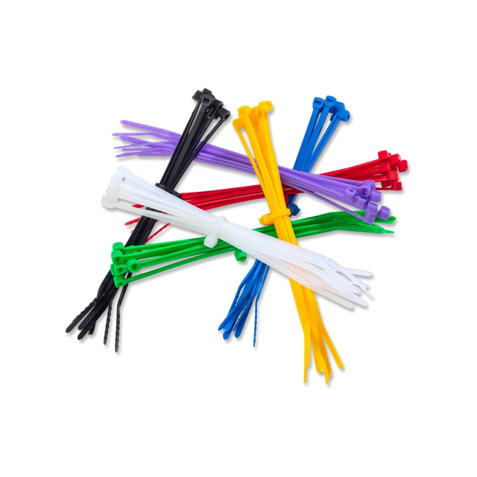 Collier de câblage pourpre de dimensions 4,8 x 200 mm, conditionné en lot de 100 pièces. Idéal pour le regroupement et la gestion efficace de câbles dans des environnements industriels ou tertiaires.