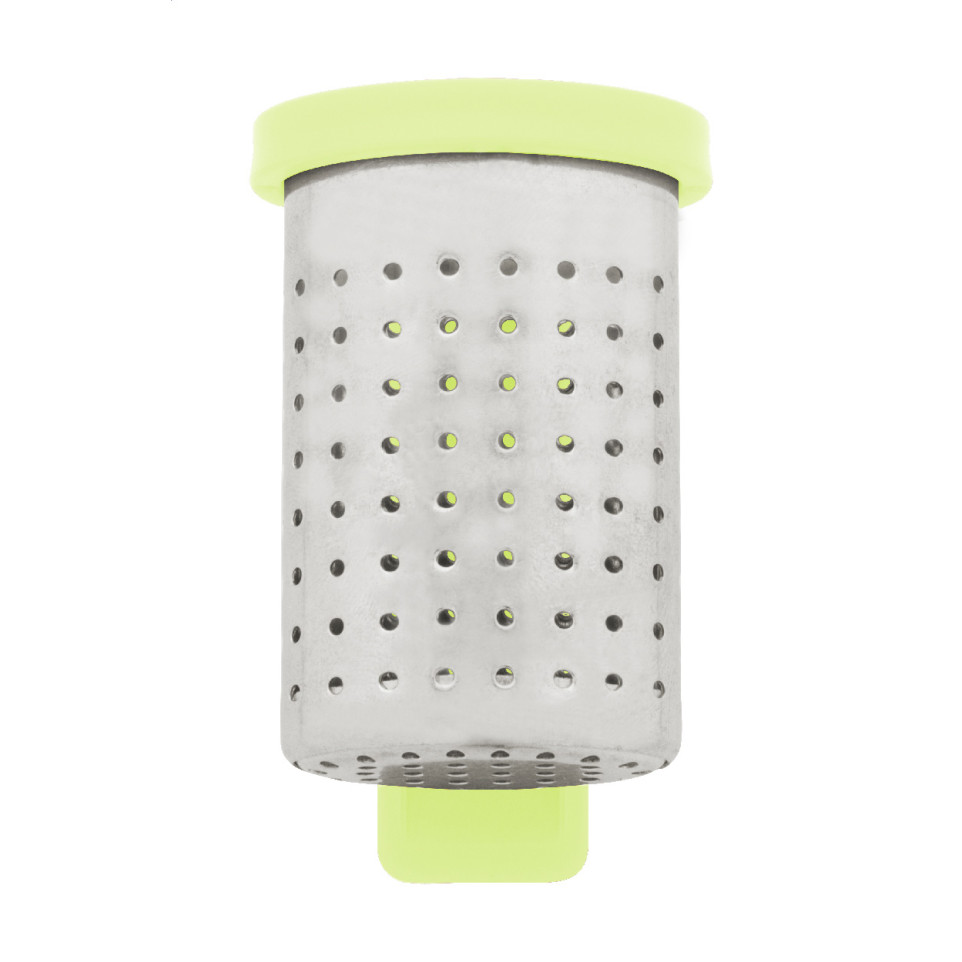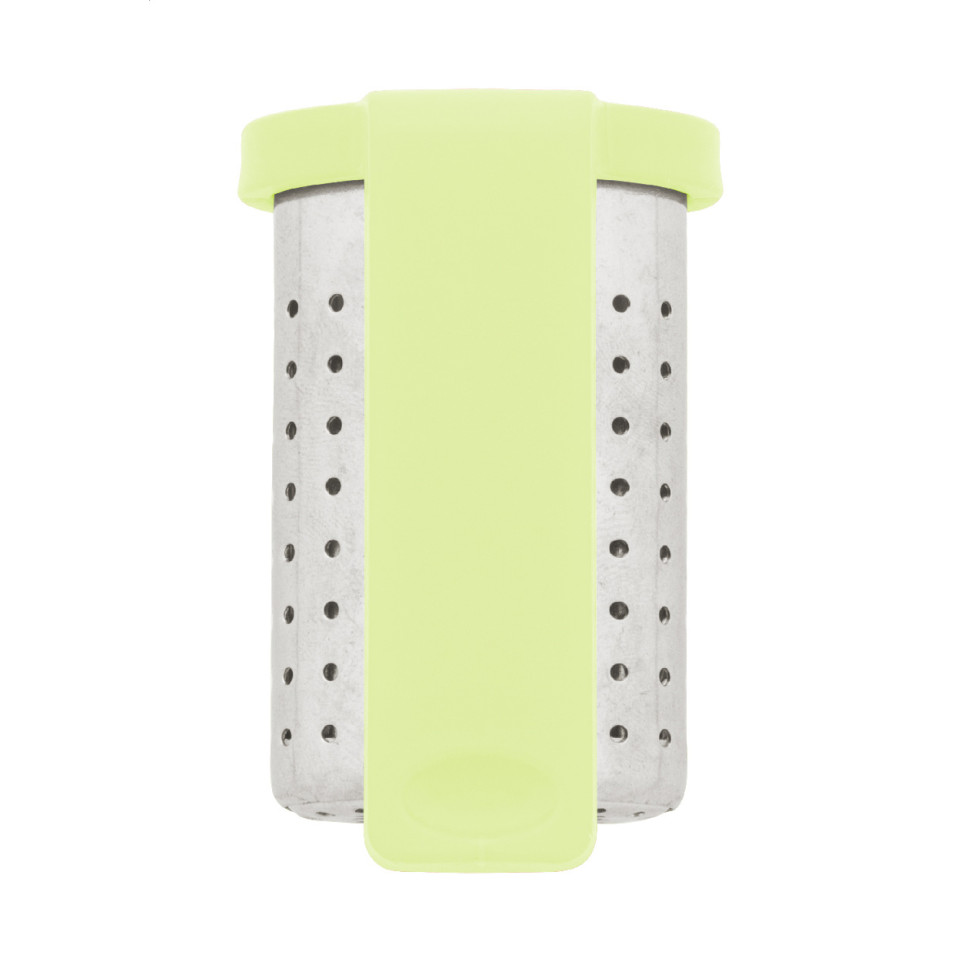 Infuseur à thé vert citron, en acier inoxydable et support en ABS recyclé, conçu pour s’accrocher facilement sur le bord d’une tasse. Idéal à la maison, au bureau ou pour une pause élégante en déplacement.
