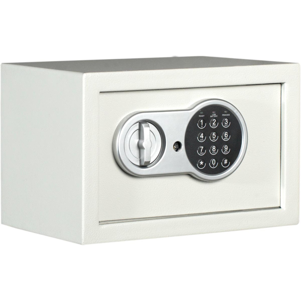 L’utilisateur choisit une combinaison pour la serrure électronique afin de verrouiller l’accès. En cas de besoin, la serrure à clé permet une ouverture d’urgence. Le coffre se fixe simplement à un mur ou au sol à l’aide du matériel fourni, assurant une installation sûre et durable.