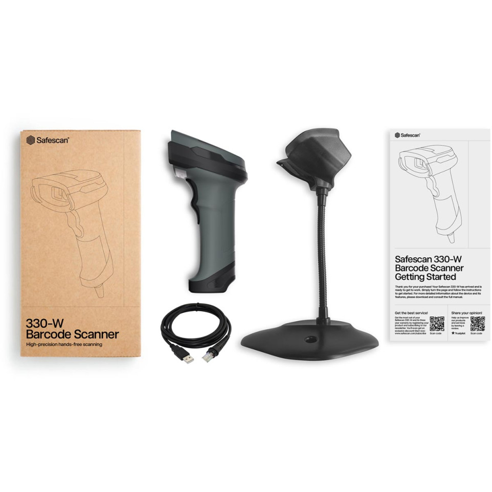 Quels types de codes-barres le Safescan 330-W peut-il lire ? — Il lit l'ensemble des codes-barres courants, incluant les codes 1D (EAN, UPC, Code 128…) et les codes 2D (QR Code, Data Matrix…).