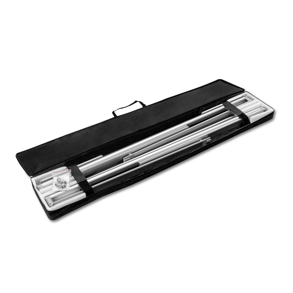 Une fois démonté, le stand est compact et se range dans un sac de transport pratique inclus.
