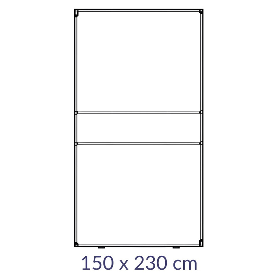 A1. Installation immédiate sans outils : La structure pré-assemblée 150 x 230 cm se met en place rapidement, sans vis ni clé, ce qui réduit le temps de montage et vous permet de vous concentrer sur l’accueil de vos visiteurs.