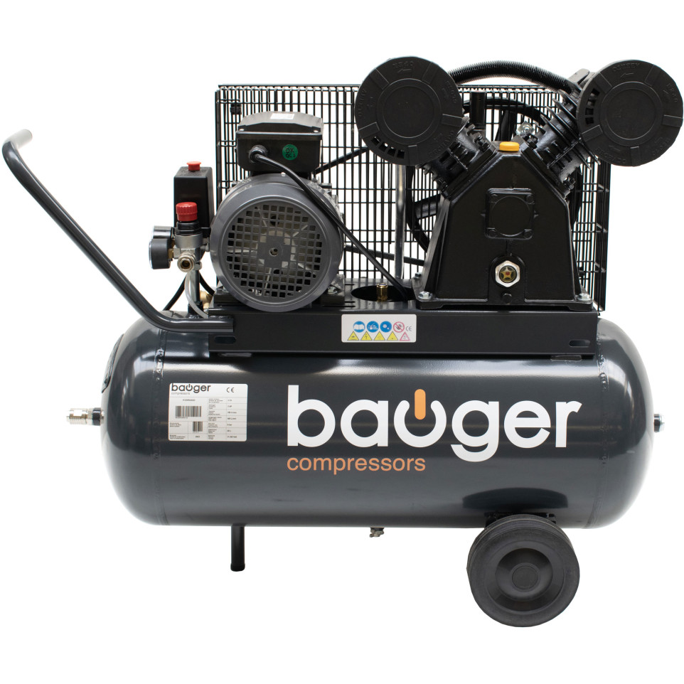 Compresseur Bauger 50L, capacité de 400 l/min, idéal pour alimenter divers outils pneumatiques en atelier ou sur chantier, robuste et conçu pour une utilisation intensive.