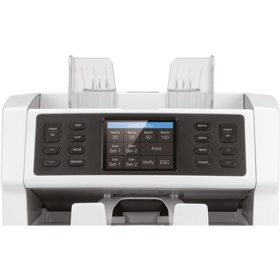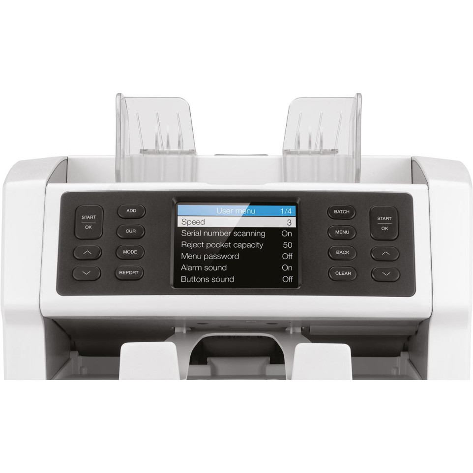 - Caractéristiques Notables : Compte jusqu'à 1,200 billets par minute, supporte 14 devises par défaut, et permet le comptage de billets triés et non triés pour certaines devises. La conception avec double case permet de placer les billets suspects dans une poche de rejet.