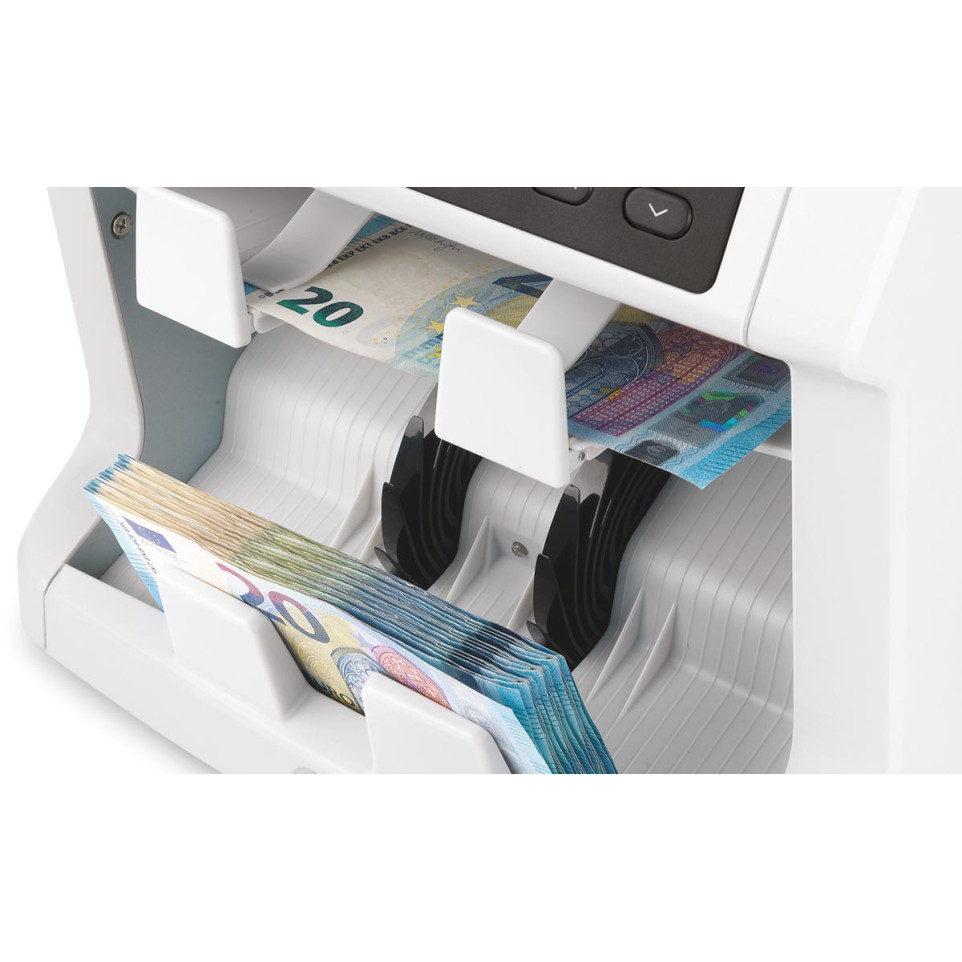 La Safescan 2985-SX fonctionne en chargeant les billets dans un grand bac d'alimentation. Elle reconnaît automatiquement la devise et la dénomination, et permet de compter les billets dans différents modes, dont le mélange et le mélange de valeurs.