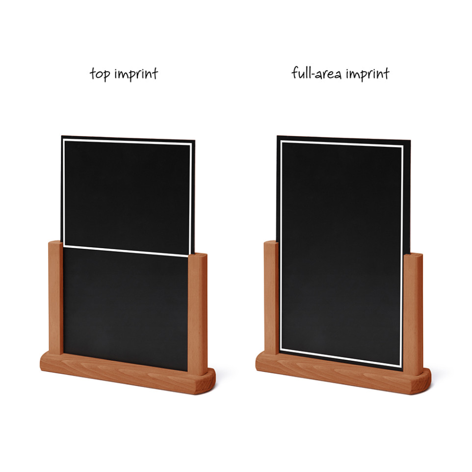 Le Natura Dessus De La Table Ardoise A4 Brun Clair est un présentoir de comptoir conçu pour afficher des documents au format A4 dans un cadre professionnel et soigné.