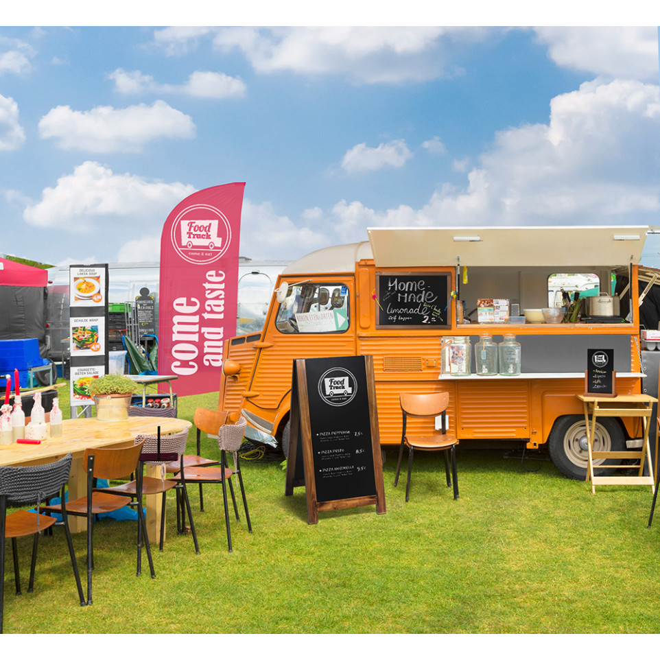 Posez le présentoir sur un comptoir ou une surface plane, rédigez votre message directement sur l'ardoise ou insérez un document A4. Idéal pour mettre en avant une offre spéciale, un menu ou une information en point de vente, en salon ou en espace d'accueil.