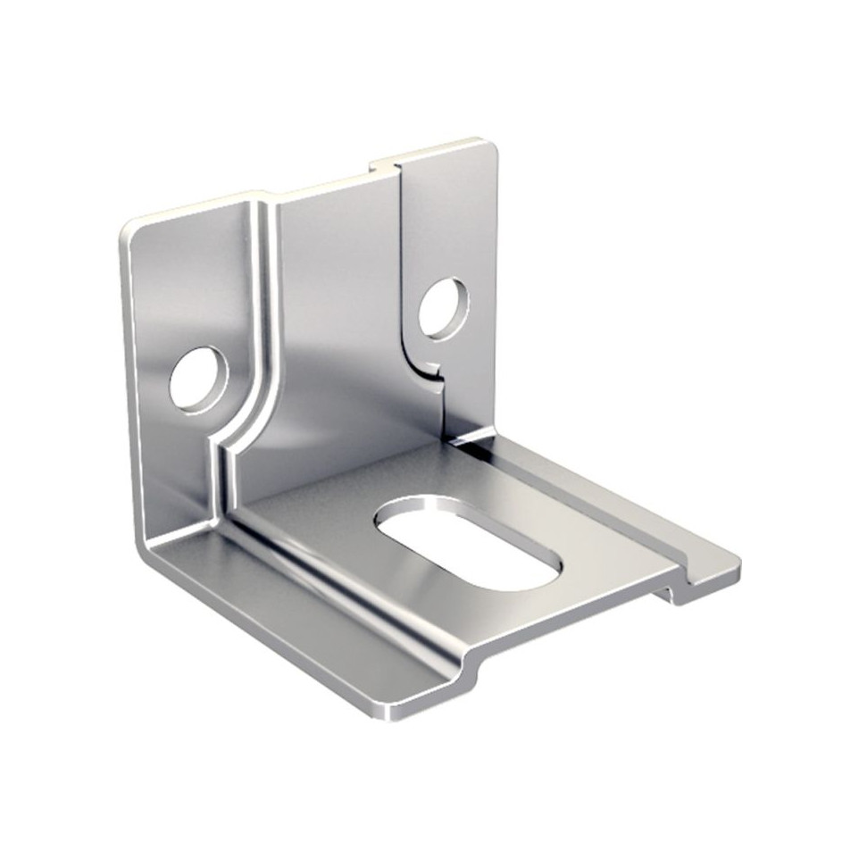 Cette équerre se fixe au mur à l’aide de vis adaptées, puis accueille le support à tige filetée permettant de suspendre et ajuster précisément le rail de la porte coulissante SPORTUB 3530, garantissant un coulissement fluide et durable en extérieur.