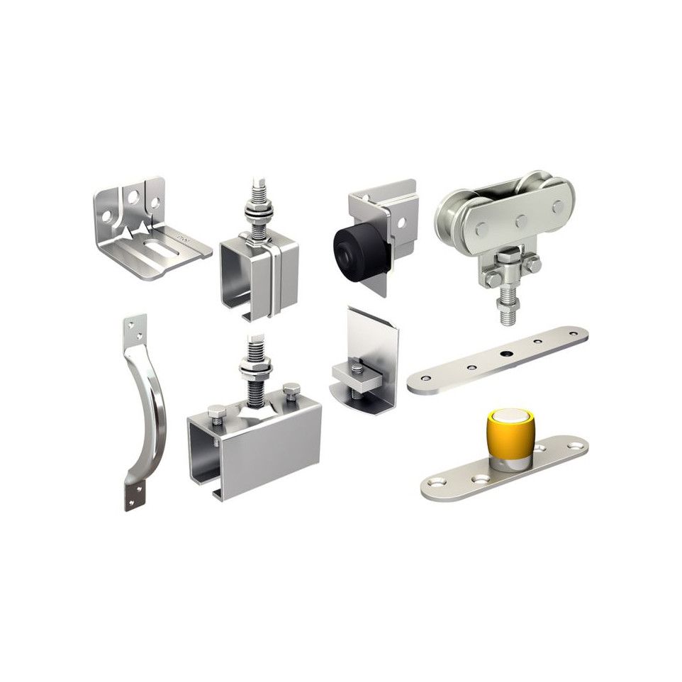 | Description | garniture de roulettes, équerres, supports, butées, guides pour 1 porte lg.max.3m et montage avec pr |