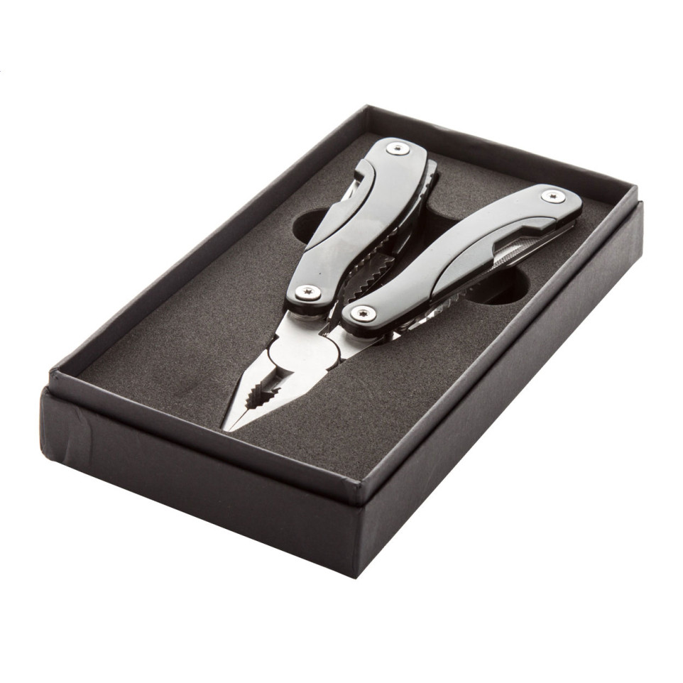 Pince multi fonctions compacte et polyvalente conçue pour les travaux quotidiens ou les déplacements. Elle offre 8 fonctions essentielles, idéale pour les bricoleurs et professionnels recherchant un outil fiable à portée de main. Livrée dans une élégante boîte cadeau noire.
